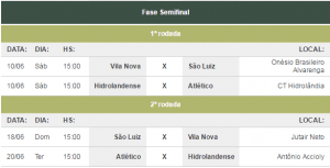 8/06/2017 @ 09:00Semi Sub-17: São Luiz x Vila Nova e Atlético x Hidrolandense