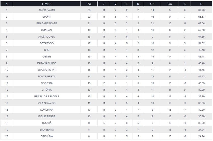 Visando nosso próximo adversário a reportagem do Dragão Goiano traz para o leitor a classificação do returno da série B, detalhe que o América-MG e o líder do returno.