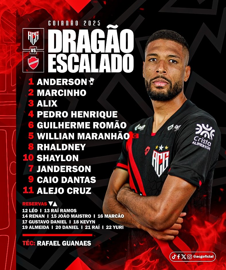 Atlético x Vila Nova: Rafael Guanaes divulga a escalação oficial do Dragão