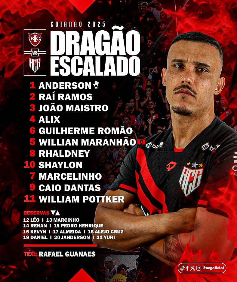O Atlético entra em campo daqui a pouco, às 17h, pela sexta rodada do Goianão 2025. A equipe visita o Inhumas no estádio Zico Brandão e o treinador Rafael Guanaes já definiu a escalação oficial que vai mandar a campo.