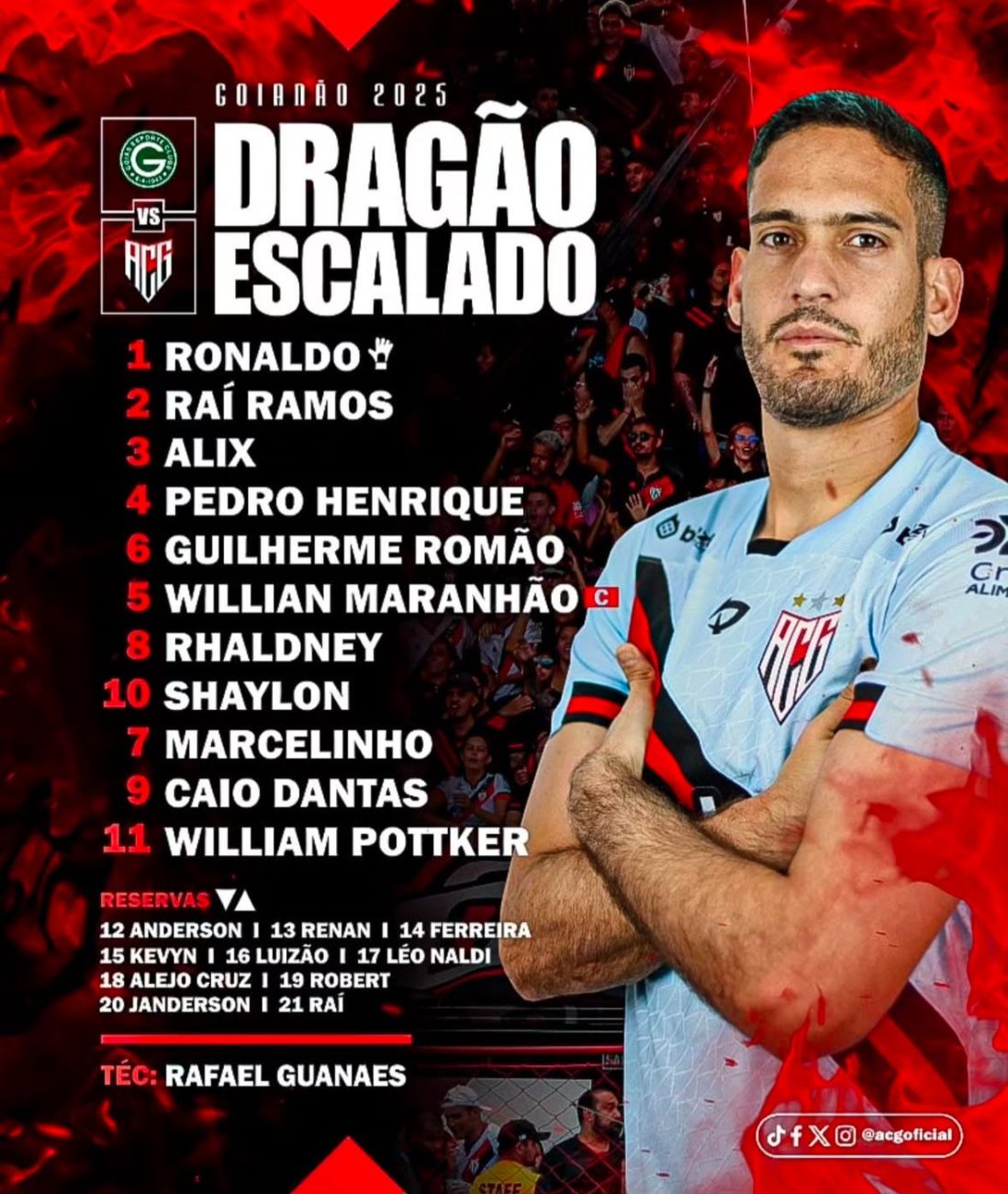 Com Ronaldo recuperado de lesão e de volta ao gol, o Dragão vai a campo com a seguinte escalação: