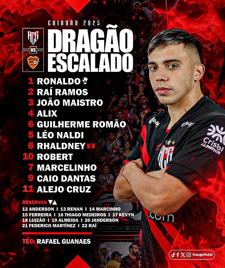 O Atlético entra em campo daqui a pouco, às 19h30, para encarar a Abecat no estádio Antônio Accioly, pela 9ª rodada do Goianão 2025. Para a partida de hoje, o treinador Rafael Guanaes não vai contar com o atacante William Pottker. Ele foi substituído no clássico contra o Goiás com dores musculares.