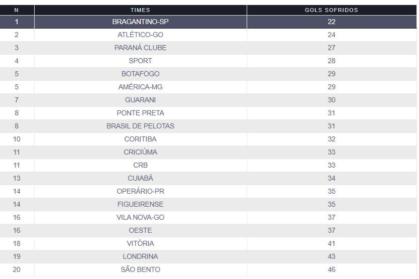A reportagem do Dragão Goiano traz para o leitor os números da defesa do Dragão após mais uma rodada.